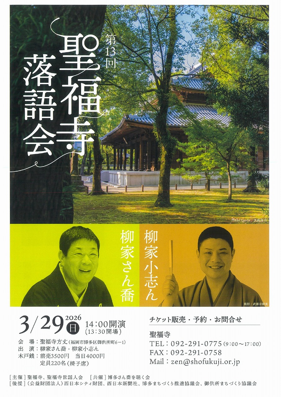博多・聖福寺で、令和8年3月29日(日)落語会が開催されます!
