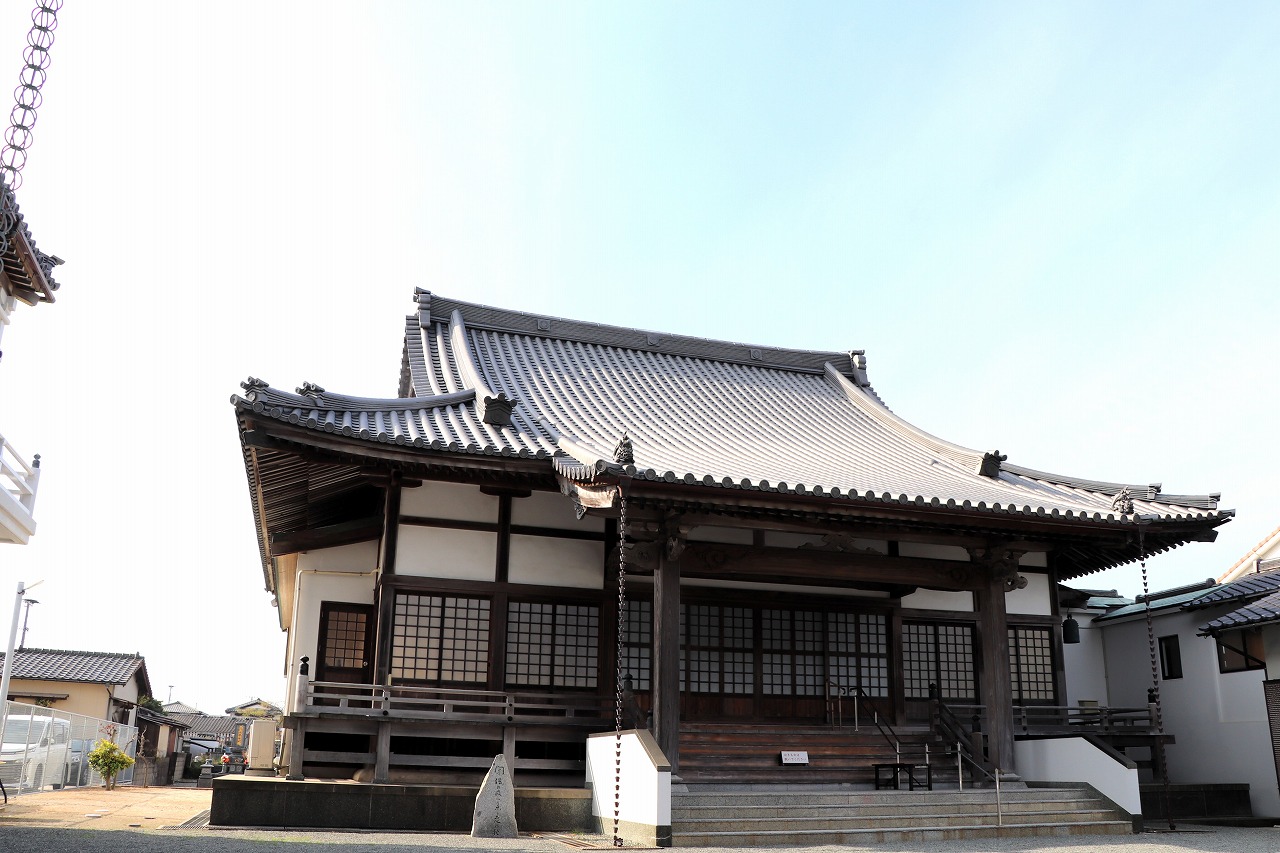 天神からわずか30分、JR西戸崎駅からわずか徒歩10分という好アクセスですが、道路を挟んだ目の前に海ノ中道海浜公園が広がり、付近に西戸渡船場もある、爽やかで風光豊かなお寺です。