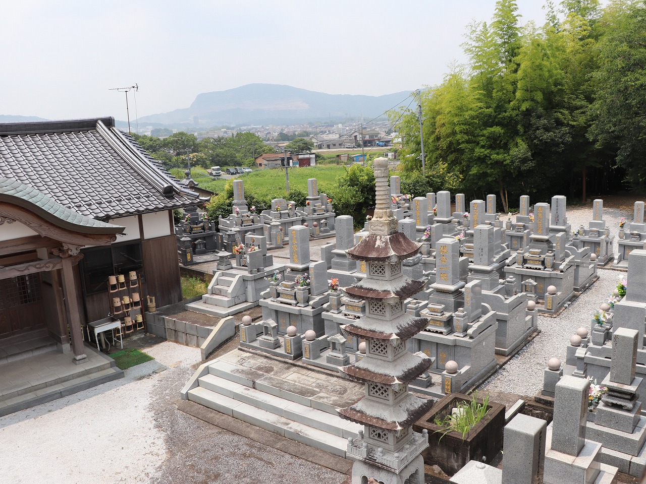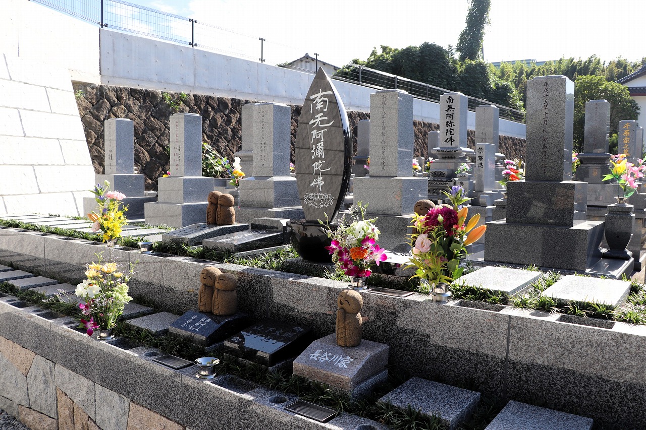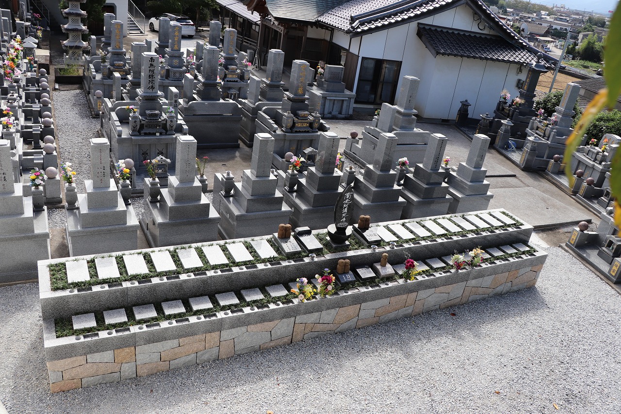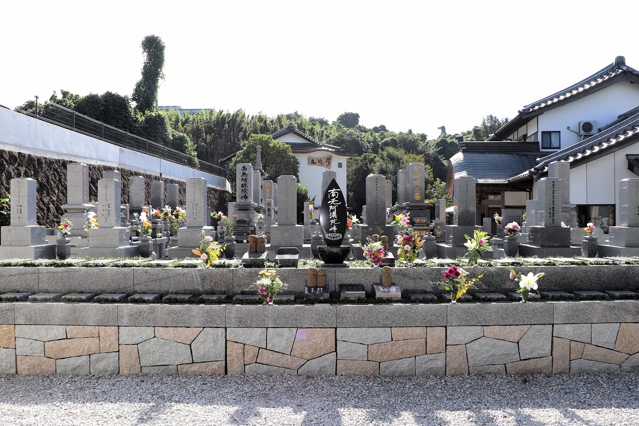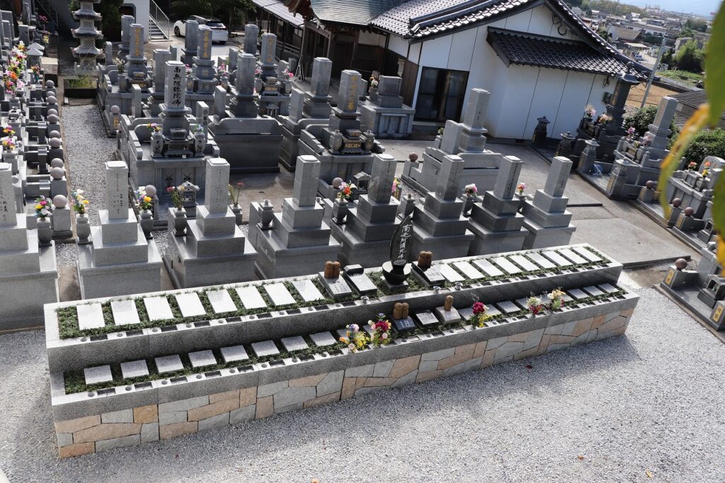 その後ろには一般のお墓、そして庫裏(住職の住居)の前には和モダンのデザインが印象的な合葬墓「光の墓」が佇んでいます。