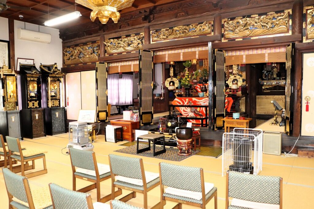 本堂は建立から150年以上は経過しているそうです。歴史と風格を感じる堂内では通常のご法要などのほか、「朝参り」や終活の専門家を招いた終活講座など「法要」「学び」「イベント」「祝事」をテーマにした様々な行事が行われています。