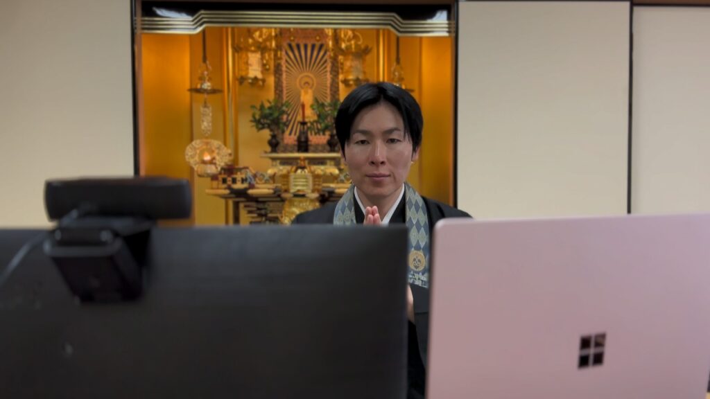 信行寺からご遠方の方や、忙しくてお寺にお参りができない皆さまのために、毎月末土曜日に「オンラインお寺参り」を開催。